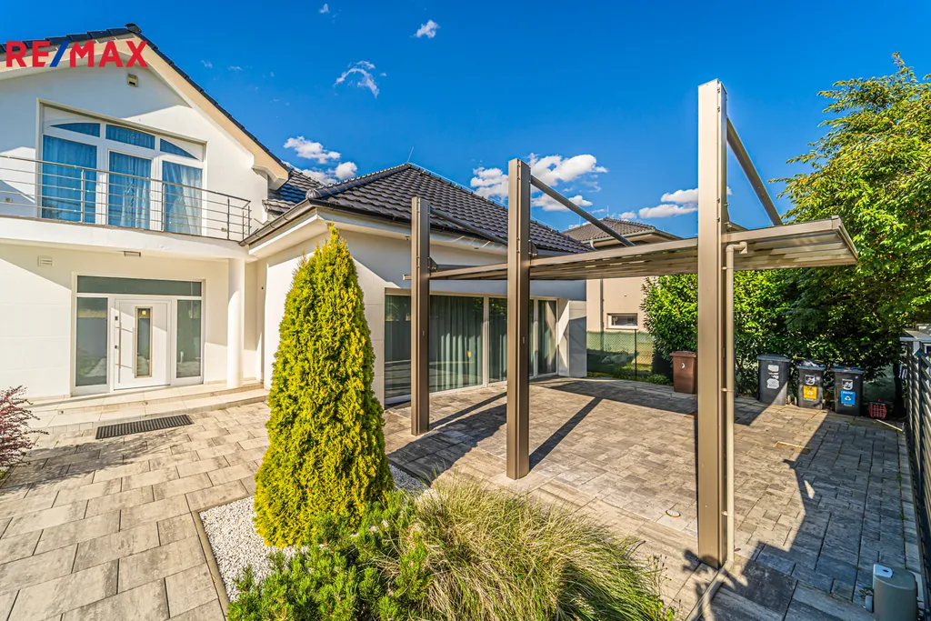 O bezpečí se stará alarm, kamerový systém a elektrické venkovní rolety.