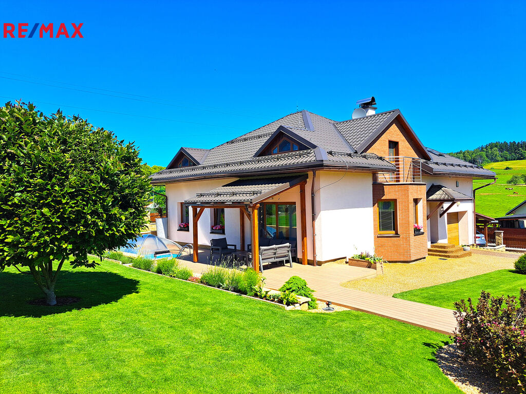 Představuji Vám do nejmenšího detailu promyšlený a špičkově udržovaný moderní rodinný dům na úpatí Krkonoš. Jedná se o prostorný, dvoupodlažní dům postavený ve vysokém standardu, který má užitnou plochu 232 m2 a patří k němu krásná udržovaná zahrada se zastřešenou terasou o výměře 1.183 m2. Dům se nachází v Držkově, jen kousek od centra města, a přitom v klidné rezidenční čtvrti, v těsné blízkosti přírody a běžeckých stop.
