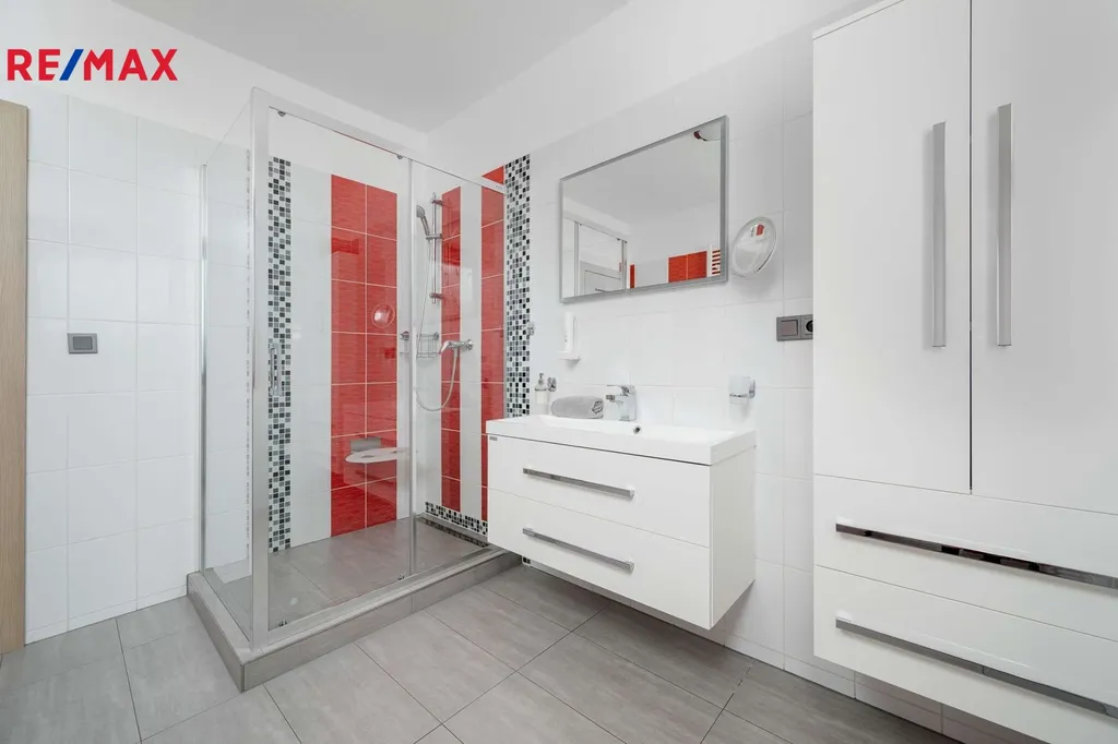 Dispozice 5+1 Vám nabídne dostatek prostoru. Z obývacího pokoje s kachlovými kamny vyjdete francouzskými dveřmi přímo na zastřešenou terasu s bazénem. Kuchyň je plně vybavená elektrospotřebiči a je propojená s obývacím pokojem. V přízemí je dále místnost, která může sloužit jako ložnice pro hosty, nebo pracovna. Naleznete zde také koupelnu se sprchovým koutem, spíž a úklidovou místnost. S přízemím je spojena garáž.