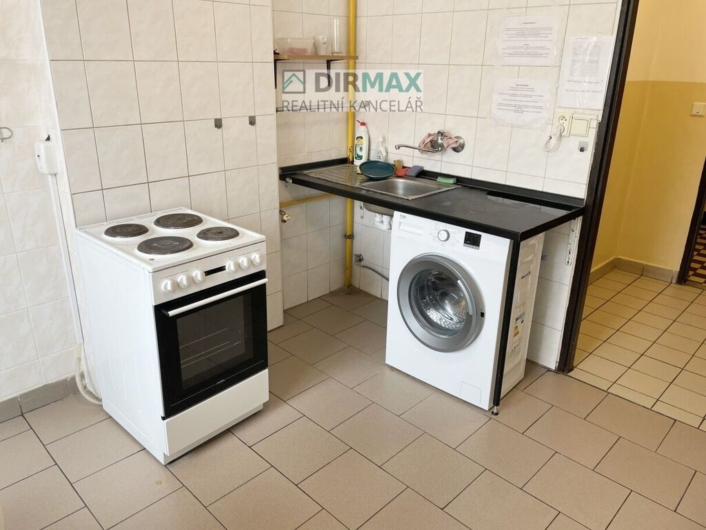 Kuchyně se vstupem z chodby, je se sporákem a troubou a je tady k využití v případě potřeby i pračka za symbolický poplatek. Je tady i několik nádob na třízený odpad.