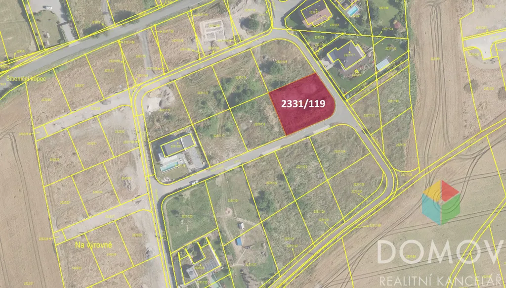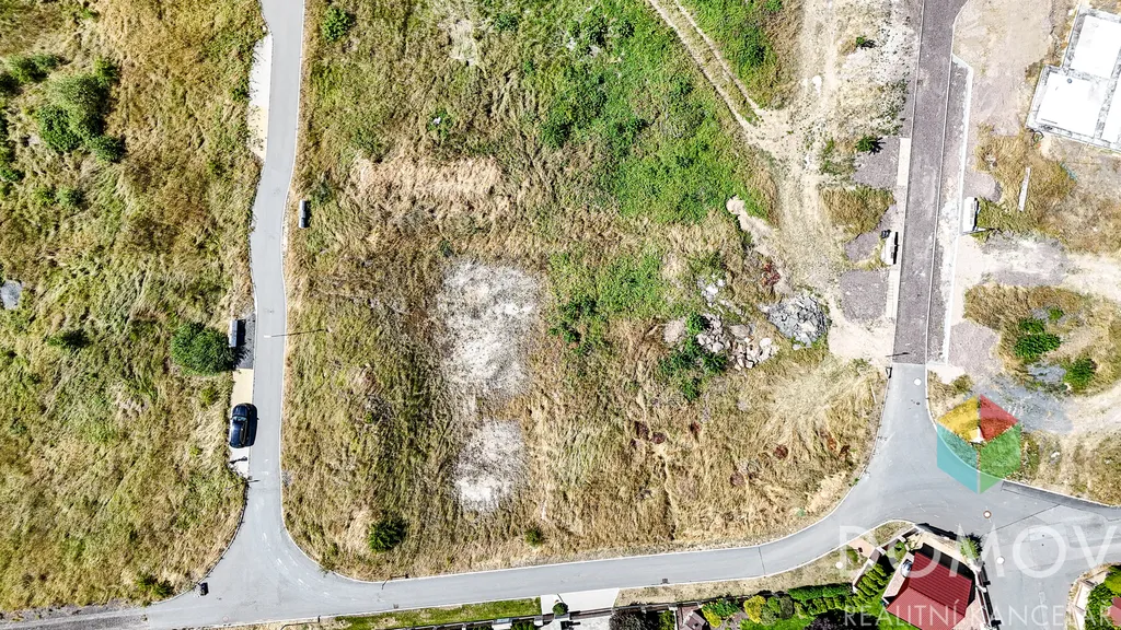 Pozemek je rohový, mírně svažitý, s již vybagrovanou srovnanou plochou připravenou na výstavbu rodinného domu.
