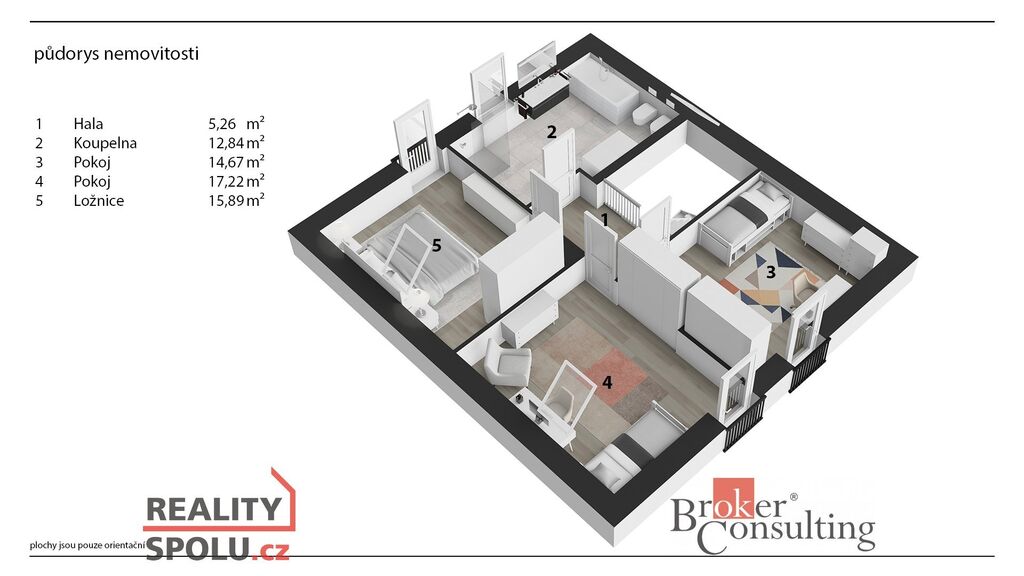 Uvedené výměry jsou orientační. Veškeré zveřejněné údaje obsažené v tomto inzerátu mají pouze informativní charakter a nejsou nabídkou ve smyslu § 1731 nebo § 1732 občanského zákoníku, ani se nejedná o veřejný příslib dle § 1733 občanského zákoníku.