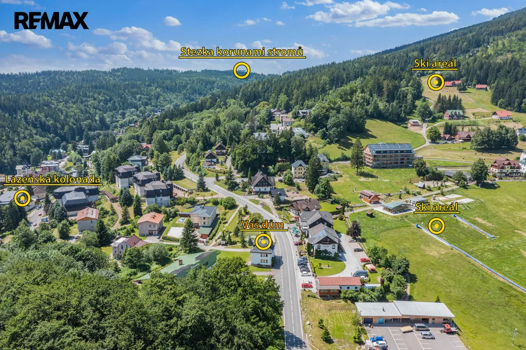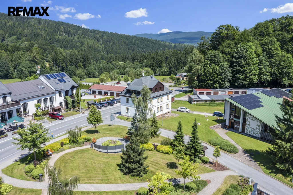 V bezprostřední vzdálenosti od prodávané nemovitosti se nachází zastávka autobusu (skibusu a cyklobusu), sjezdové tratě, sáňkařská dráha, Aquacentrum, lázně, doktor, škola, pošta a mnoho restaurací. SkiResort ČERNÁ HORA – PEC je největší lyžařský areál v Česku, který nabízí přes 50 km sjezdovek na 1 skipas. Běžkaře určitě pro změnu potěší běžecké trasy. V létě poté můžete krkonošskou přírodu objevovat na horských kolech, koloběžkách, na Stezce korunami stromů či z lanového parku.