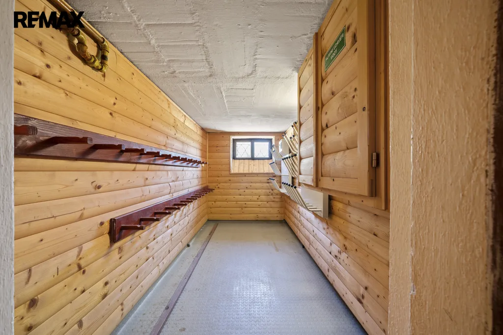Další prostory představuje první podzemní podlaží, jelikož je dům cca z jedné poloviny podsklepen. V 1. PP se nachází lyžárna, kotelna, sklad a technické zázemí.