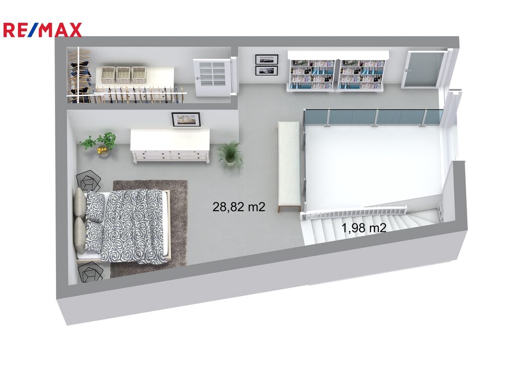 Řadový, patrový rodinný dům 2+kk s otevřenou dispozicí - loft, Blučina, ul. Komenského. Celková plocha pozemku 181 m2, užitná plocha domu cca 95 m2.