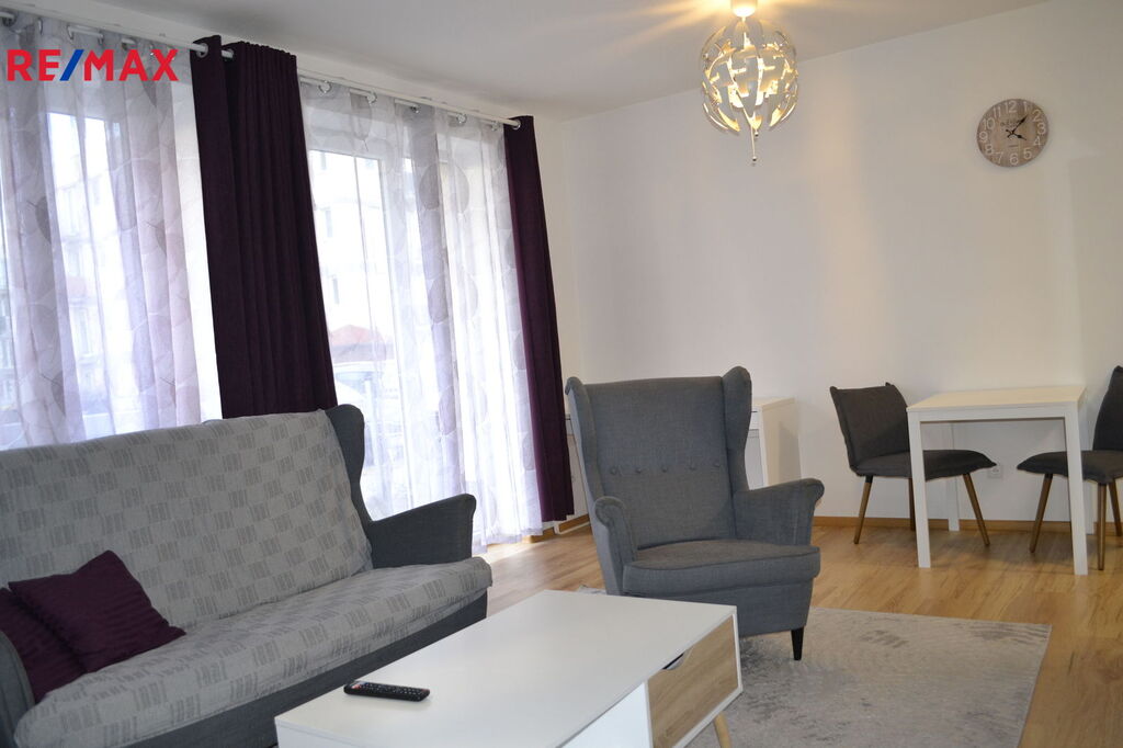 Kompletně moderně zařízený byt, jeho dominantou je prostorný obývací pokoj se sedací soupravou, velkou manželskou postelí a jídelním stolem. Kuchyňská linka je plně vybavena spotřebiči včetně myčky na nádobí a mikrovlnné trouby. V koupelně Je sprchový kout a neschází tady pračka.