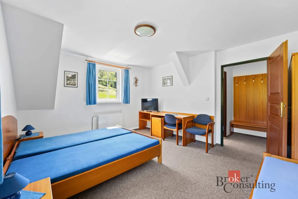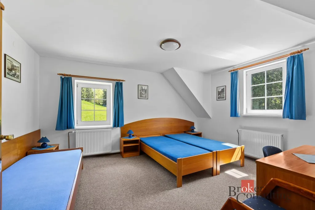 Penzion nabízí stabilní zázemí a současně prostor pro další rozvoj – například přestavbu na samostatné apartmány nebo bytové jednotky.