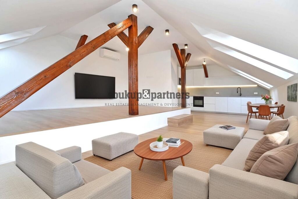 Byt 4+1/ Terasa/ Komora - 118 m2, který se nachází v 5. patře cihlového domu s výtahem jen pár minut chůzí od Smíchovské náplavky. Byt je čerstvě po kompletní a velmi náročné rekonstrukci, dle architektonického a designového návrhu - vinylové podlahy v dekoru francouzského dubu, kuchyňská linka vč. vestavných spotřebičů ( indukční varná deska, digestoř, lednice s mrazákem, myčka, el. trouba, mikrovlná trouba), interiérové dveře vč obložek a designového kování, koupelna se sprchovým koutem i vanou a podlahovým vytápěním, 2 x wc vč. bidetové spršky. Nově všechny IS (elektřina, plyn, voda, odpady). Byt disponuje komorou s vodovodní i odpadní přípojkou na pračku a sušičku. Byt je vybaven novou klimatizací Daikin. Vytápění a teplou vodu zajišťuje nový plynový kondenzační kotel. Orientace terasy je západní s výhledem na Malvazinky. V bytě jsou dobře řešeny úložné prostory a byt má svojí půdu s klasickými stropními stahovacími schůdky. Dům prošel kompletní rekonstrukcí v roce 2005, kdy bylo nově vybudováno podkroví, jehož součástí je i tento byt. V posledních letech byl dům revitalizován - společné prostory, okna, vstup, střecha a výtah. Dům má perfektní polohu jen pár min. chůzí od nábřeží Vltavy a druhým směrem od Anděla. OV - možnost financovat hypotečním úvěrem, který rádi zařídíme. Pro více informací volejte manažera nabídky.