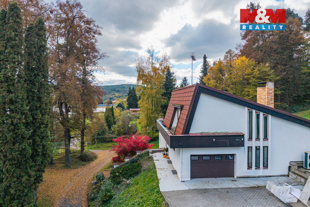 Nabízíme k prodeji výjimečný dvougenerační rodinný dům v klidné části obce Kamýk nad Vltavou. Tento cihlový třípatrový dům s užitnou plochou 350 m² je ideální jak pro bydlení, tak pro podnikání. Nemovitost zahrnuje dvě samostatné bytové jednotky: 2+1 (60 m²) a 4+1 (121 m²), každá s vlastním vchodem. K dispozici je prostorná dvojitá garáž a další 4 parkovací místa. Dům nabízí zimní zahradu se saunou a několik teras pro relaxaci. Vytápění je připraveno pro tepelné čerpadlo, v současné době slouží jako vytápění krbová vložka a elektrický kotel. Voda je ohřívána dvěma elektrickými bojlery. Dům je ve výborném stavu, připraven k nastěhování. Rozsáhlý kaskádový pozemek o rozloze 2149 m² poskytuje dostatek prostoru a soukromí. Dům nabízí úžasný výhled na Vltavu. Obec Kamýk je velice aktivní, je zde spousta vyžití pro děti i dospělé, v současné době se zde buduje přírodní koupaliště. Skvělá občanská vybavenost a výborná dostupnost do Příbrami i Prahy. Nenechte si ujít tuto jedinečnou nabídku.
