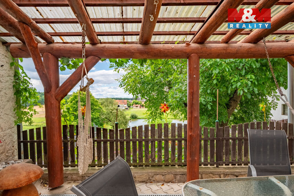 Nabízíme k prodeji zrekonstruovanou zemědělskou usedlost se 2 zahradami, rybníkem a rozlehlými pozemky o celkové výměře 13512 m² v krásném a klidném prostředí pouhé 2 km od Písku. Hlavní dům o dispozici 3+1 a obytné ploše 163 m² nabízí pohodlné bydlení a stylovou vinárnu k relaxaci nebo oslavám. Součástí jsou také 2 stodoly vhodné pro podnikání, garáž, sklep, pergola i zahradní jezírko. Na pozemku se nachází 2 kopané, 2 vrtané studny a možnost napojení na obecní vodovod. Odpad je řešen jímkou, projekt na čističku je k dispozici. V rámci rekonstrukce v roce 2020 byla provedena výměna oken, dveří, vodoinstalace, zateplení stropu, el. rozvody, podlahy, komíny aj. Vytápění zajišťěné automatickým kotlem na tuhá paliva a novými kachlovými kamny s velkou ohřívárnou. Klidná lokalita s výbornou dostupností, do Prahy 45 minut po dálnici! Více informací rádi poskytneme.