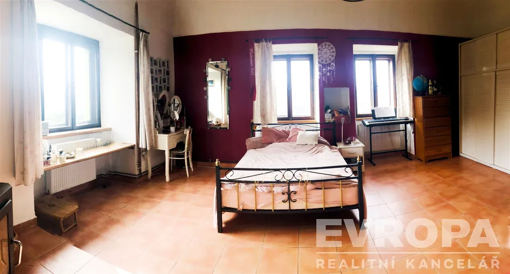 V dojezdové vzdálenosti od Prahy – 18 km od Jesenice, jen 7 km od Benešova, v malebné obci Bukovany, nabízíme na pozemku o rozloze 1554 m2, poctivě rekonstruovanou, prostornou chalupu s osobitým historickým kouzlem, nyní využívanou k trvalému bydlení, ale vhodnou i jen na rekreační účely. Pozemek domu je umístěna na kopci s hezkým výhledem. Přízemí domu s rozlohou 208 m2 nabízí velkorysý prostor o dispozici 4+kk a stejně velkou půdu s vysokými krovy, kde lze realizovat půdní vestavbu po celé její rozloze, s odděleným vchodem.