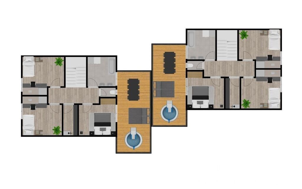 Nemovitost se prodává jako uzavřená hrubá stavba viz fotografie. V tomto domě je již hotové schodiště a v 2.NP jsou hotové sádrokartonové podhledy, zateplené stropy, a hotová dispozice. Možnost dokončení na klíč dle vlastních představ s využitím veškerých moderních technologií. Umístění domů v obci Čižice nabízí úžasné panoramatické výhledy.