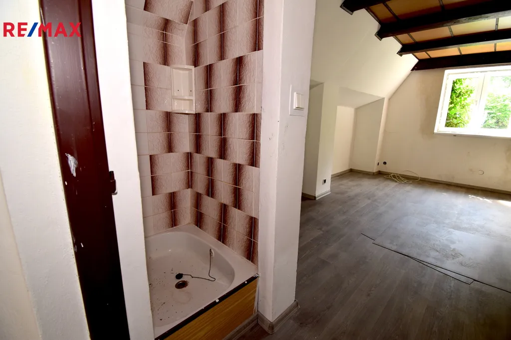 Přízemí se skládá ze vstupní verandy, chodby, koupelny s vanou, samostatného WC a z obývacího pokoje s kuchyňským koutem a spíže. V levé části je momentálně kůlna, kde se otevírá řada možností , jak ji prakticky a smysluplně přeměnit podle potřeb budoucího majitele. Z chodby v přízemí vede schodiště do patra, kde se nachází otevřená hala, ze které je vstup do čtyř samostatných pokojů. V této místnosti je také samostatné WC a samostatný sprchový kout. Dále dva z pokojů mají vlastní koupelnu (sprchový kout a WC). Dispozice tohoto domu je ideální pro provoz malého penzionu nebo ubytování pro vícečlennou rodinu.