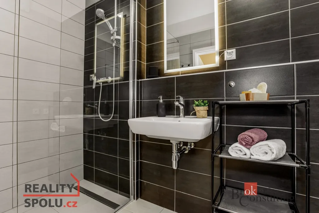 Tento moderní apartmán o dispozici 1+kk s užitnou plochou 32 m2 se nachází v přízemí cihlového domu z roku 2022. Dispozičně nabízí vstupní chodbu, koupelnu se sprchovým koutem a toaletou a prostorný obývací pokoj s plně vybaveným kuchyňským koutem, ze kterého je přímý vstup na terasu o výměře 9 m2, která je bezesporu velkou výhodou tohoto apartmánu.