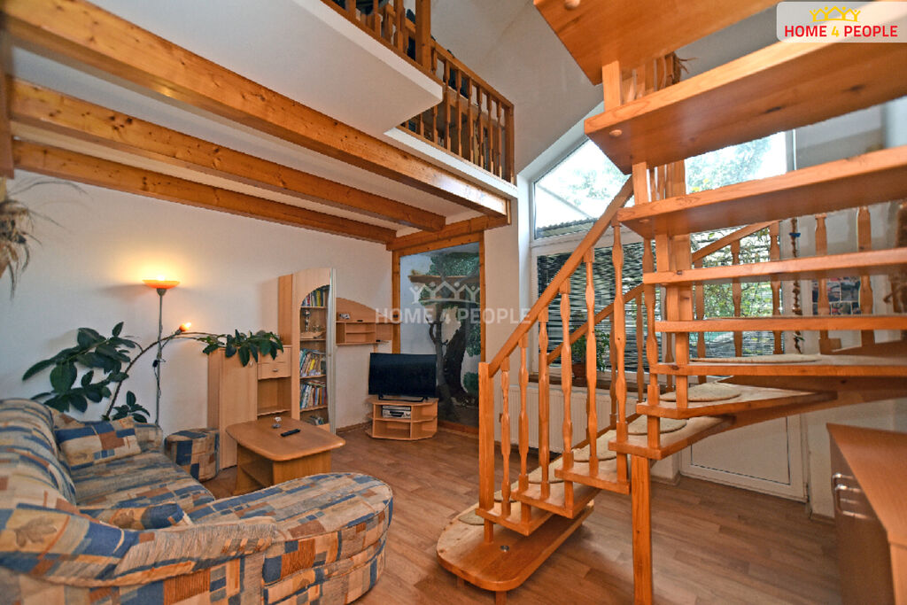 Do 2.NP se vstupuje po dřevěném schodišti z obývacího pokoje. Vysoký strop je unikátně řešen dřevěnou galerií. Tím vytváří atraktivní dominantu obývacího pokoje a příjemné prostředí.
