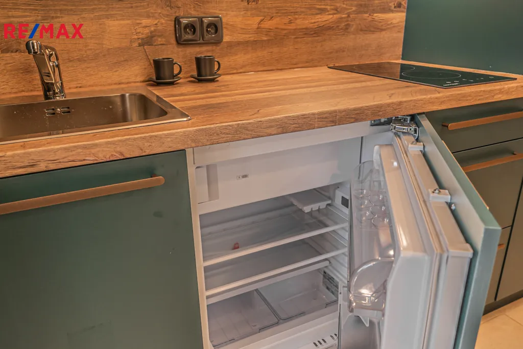 Byt je kompletně zařízen nábytkem (viz foto), z dalšího vybavení k dispozici kuchyňský kout se spotřebiči (varna deska, pračka, malá lednice s mrazákem, TV). Na podlahách třívrstvé dřevěné podlahy + dlažba, a vysoce kvalitní zařizovací předměty Villeroy&Boch. Dům po kompletní rekonstrukci 2020 r.