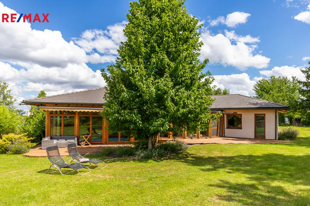 K prodeji nabízím výjimečný přízemní rodinný / bungalov dům o dispozici 5+kk a dalšími dvěma pracovnami, vnitřním bazénem, rozlehlou zahradou s venkovní saunou a samostatnou garáží.