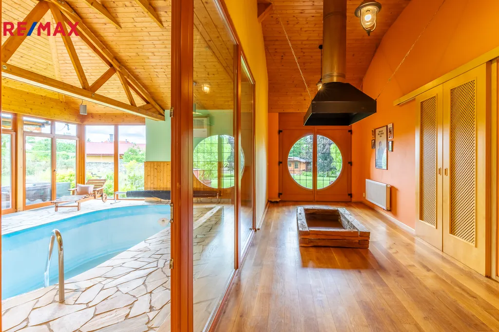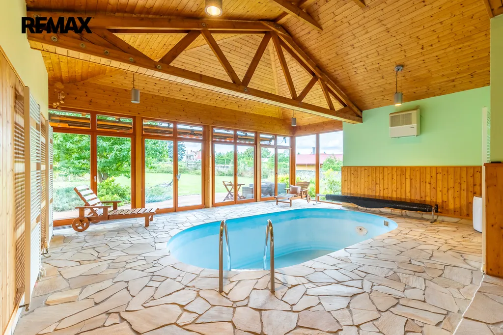 • Krytý vnitřní bazén s odpočívárnou a přístupem na zahradu