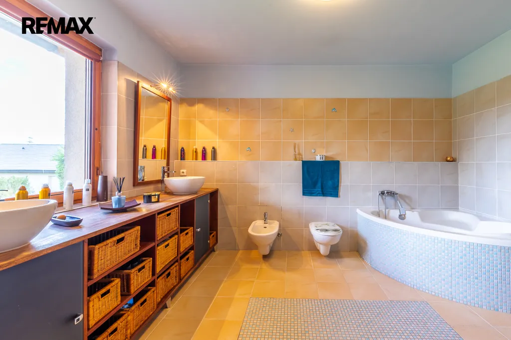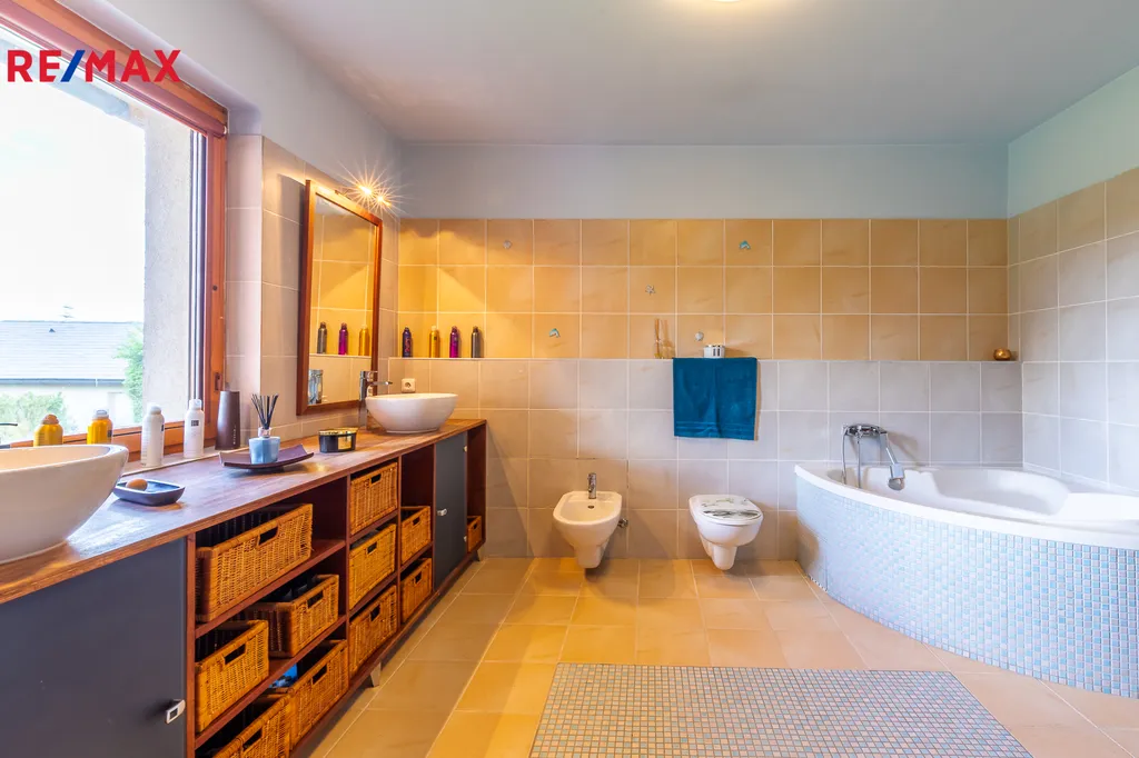 • Dvě koupelny, dvě šatny, komora, prádelna, sklad