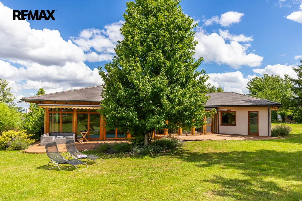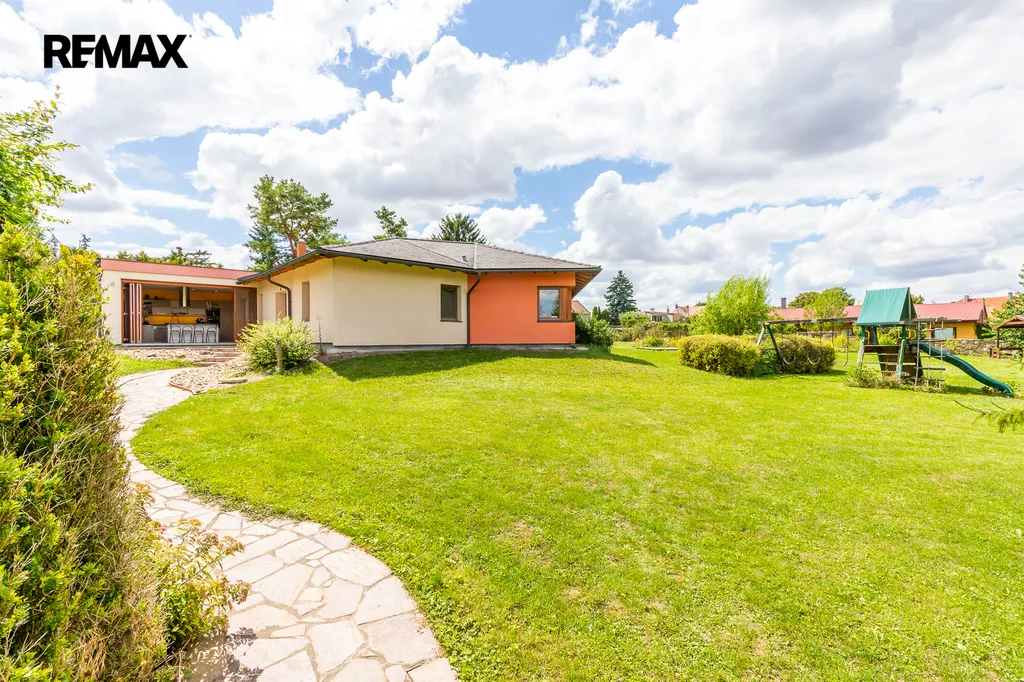 Nabízím výjimečný bungalov /přízemní rodinný dům o dispozici 5+kk a dalšími dvěma pracovnami, vnitřním bazénem, rozlehlou zahradou s venkovní saunou a samostatnou garáží.