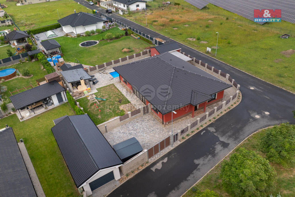 Exkluzivně nabízíme k prodeji prostorný rodinný dům v klidné části obce Blšany u Loun. Tato jednopodlažní nemovitost, postavená z kvalitních materiálů, nabízí 5 velkých místností s celkovou užitnou plochou 176 m². Podlahové vytápění zajišťuje tepelné čerpadlo, nízké náklady na bydlení. Dům je ve velmi dobrém stavu a je připraven k okamžitému nastěhování, má venkovní rolety, zabezpečení kamerovým systémem. Součástí domu je také prostorná terasa s krytým bazénem, která poskytuje příjemné místo pro relaxaci. Pod pergolou je letní kuchyňka s venkovním posezením, krbem a udírnou. Pozemek o rozloze 784 m² nabízí dostatek prostoru pro zahradu či další úpravy dle Vašich představ. Na pozemku je garáž a možnost dalšího parkování. Lokalita je ideální pro ty, kteří hledají klidné bydlení s výbornou dostupností služeb. Výhodné financování Vám zajistíme.