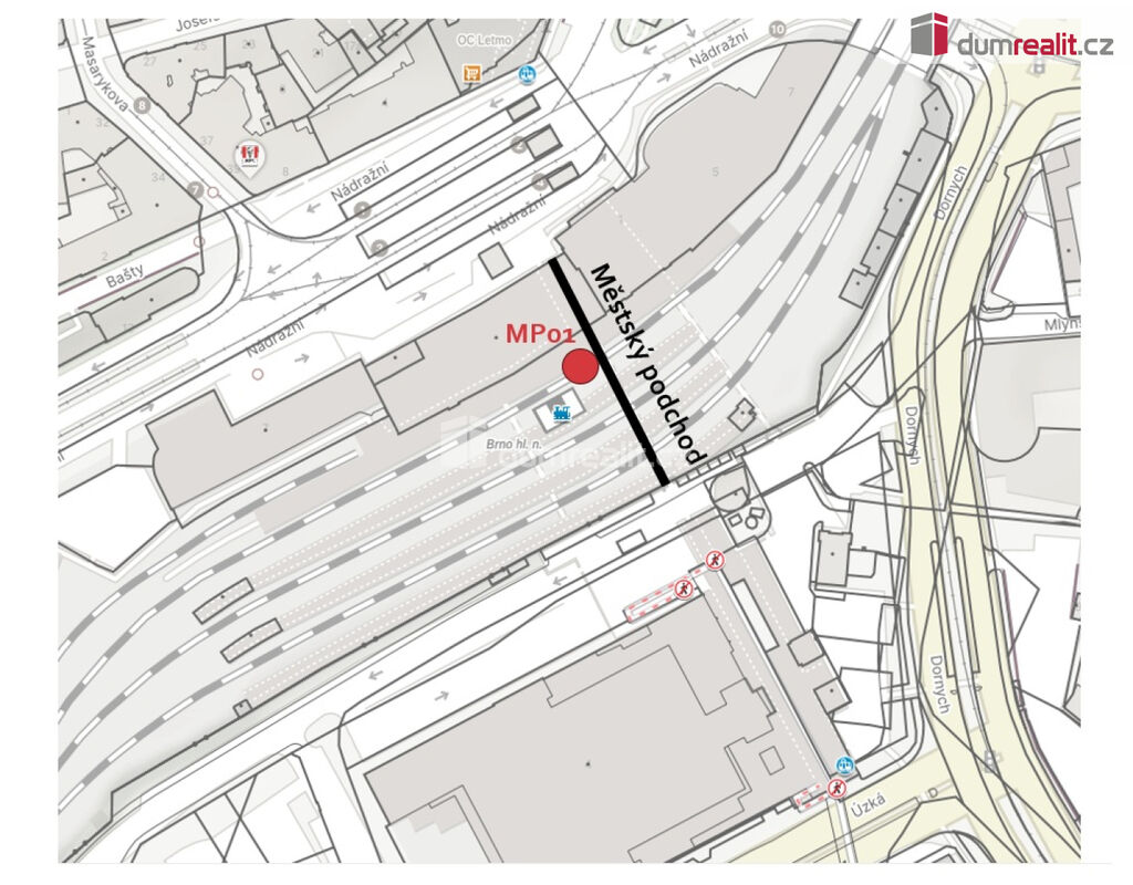 Dumrealit.cz Vám zprostředkuje pronájem komerčního prostoru 93m² v suterénu hl. nádraží Brno, spojka mezi obchodním centrem Vaňkovka a centrem města Brna. Nabízený prostor má celkem rozlohu 93m², rozdělen ve dvou propojených prostorech 51m² a 42m². Sociální zázemí (WC) se nachází v menším prostoru, ale dá se rozšířit a vytvořit i kuchyňku nebo zázemí dle požadavků nájemníka. Jedná se o prostor, kde denně projde cca 140.000 lidí. Jednotka je aktuálně kolaudována jako obchod, ale není problém provést rekolaudaci na jiný záměr podnikání (nehtové studio, manikúra/pedikúra, kadeřnictví, kosmetika, lehký gastro provoz...aj.). Nabízený prostor bude připraven vyklizený, vymalovaný pro nového nájemníka k 1.3.2026. Zásobování je možné z parkoviště pošty. Možno pronájmu parkovacího místa.