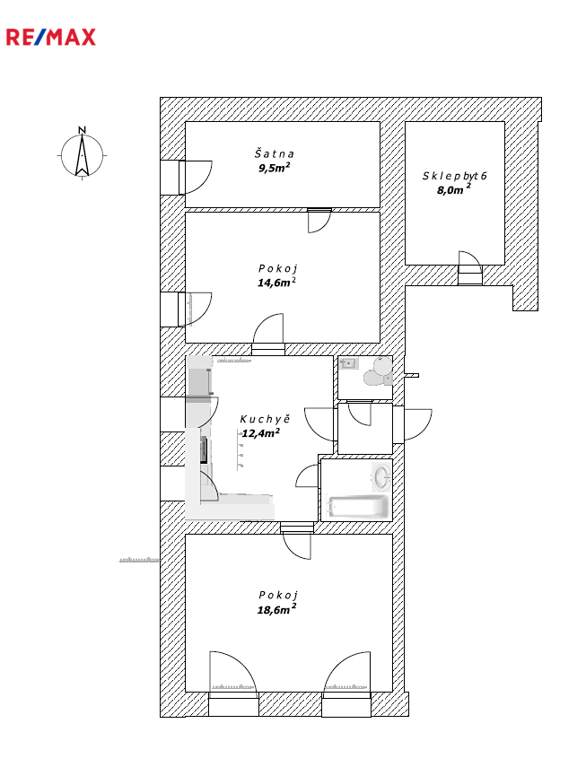 - Byt č. 1 o výměře 65,6 m²