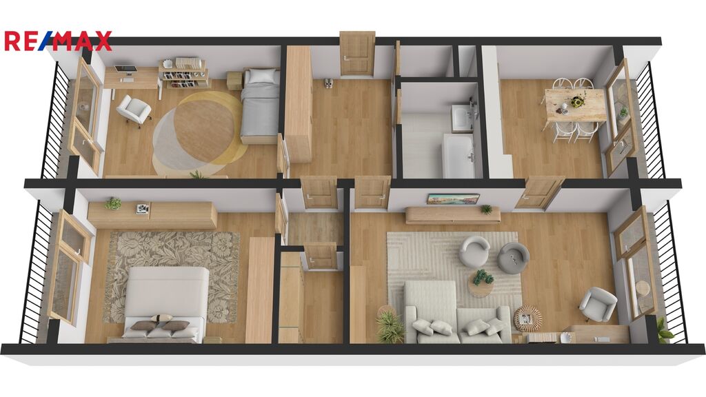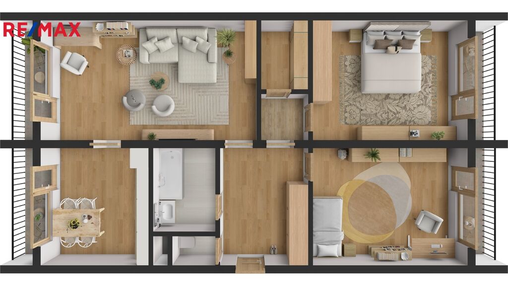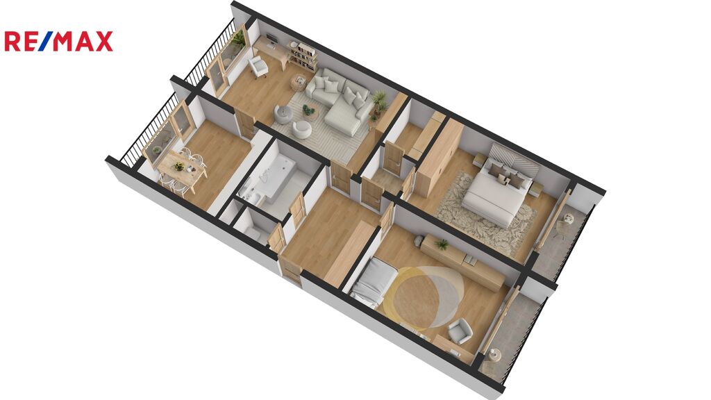Tento byt nabízí ideální kombinaci prostorného bydlení, klidné lokality a výborné dostupnosti veškeré občanské vybavenosti.