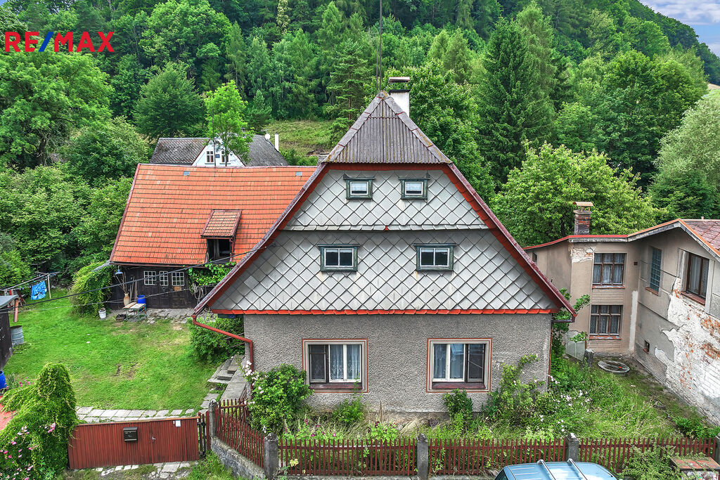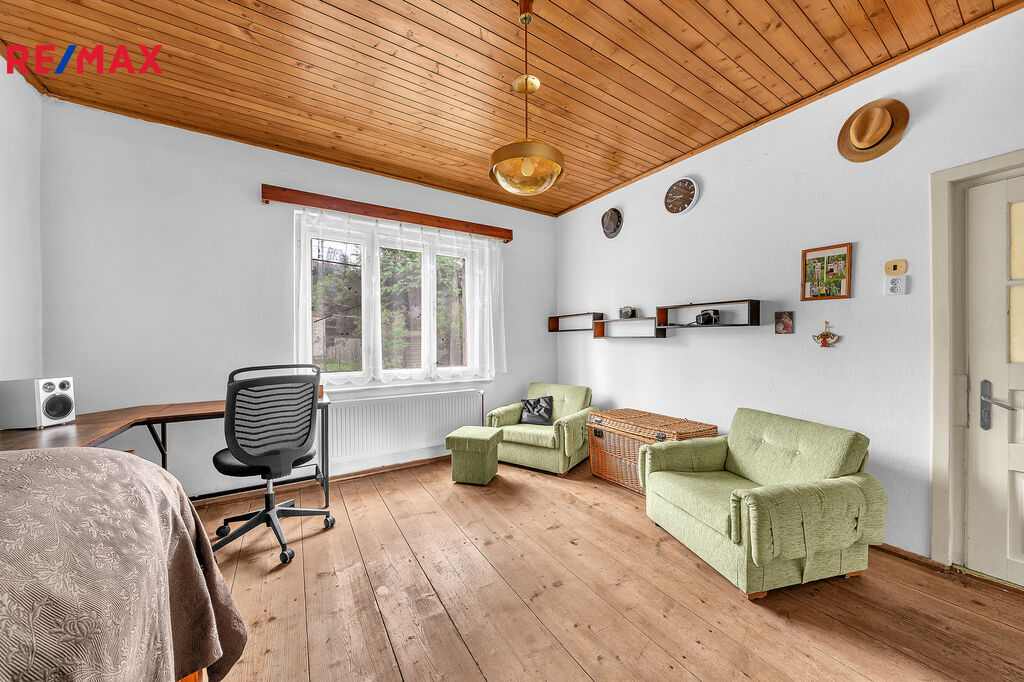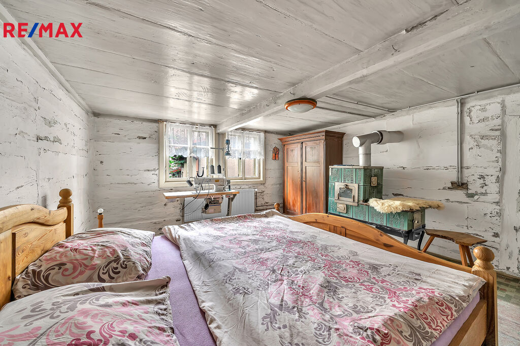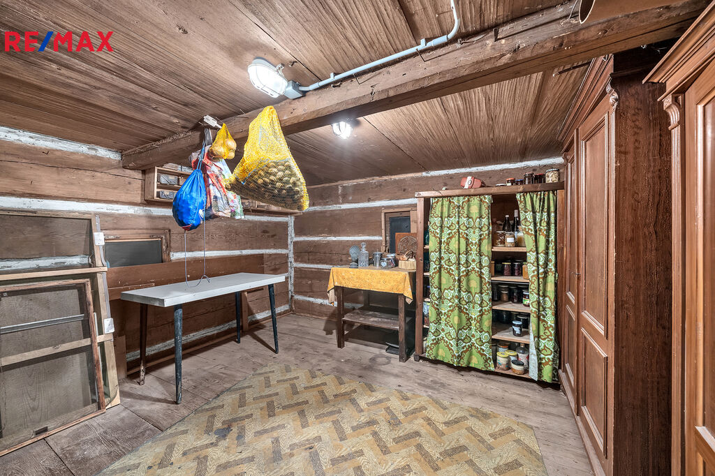 Ke koupi Vám tu nabízím rodinný dům s pozemkem o celkové výměře 942 m2. Zastavěná plocha domu je 318 m2. Na obytnou část připadá zhruba 134 m2, kdy užitná plocha je zhruba 110 m2. Tvoří ji kuchyň s jídelnou a odpočinkovou částí, 3x pokoj, koupelna, chodba a prostorná spíž. Obytná část je přízemní. Zbylou část domu tvoří stodola, která má 2 podlaží a dvoupodlažní půda nad obytnou částí, která je z větší části zděná a zbytek stavby je roubený, dřevěný. Dům je částečně podsklepený.