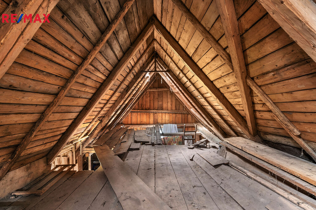 Půda a stodola Vám nabízí širokou škálu využití - ať už pro skladování, kutilství a nebo je i možnost přebudovat vše na obytné prostory.