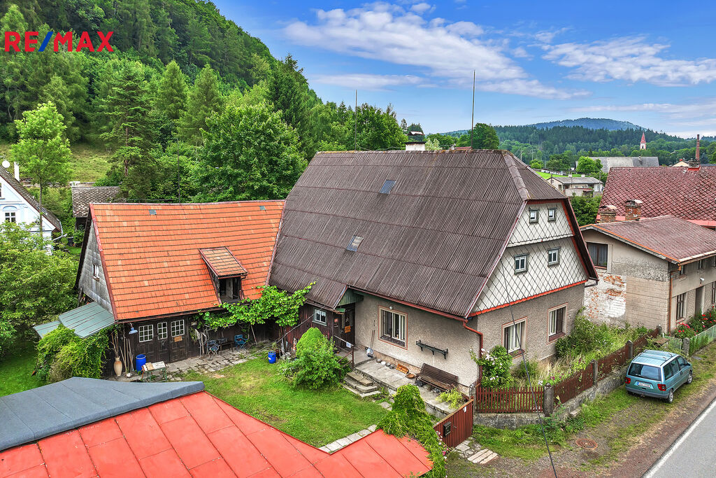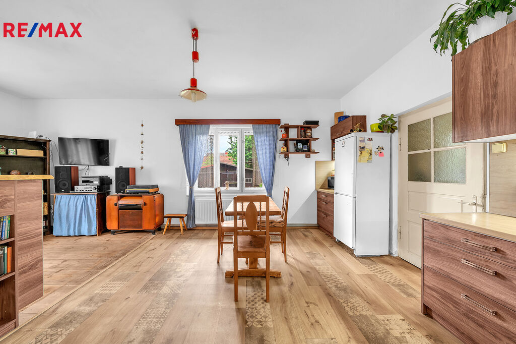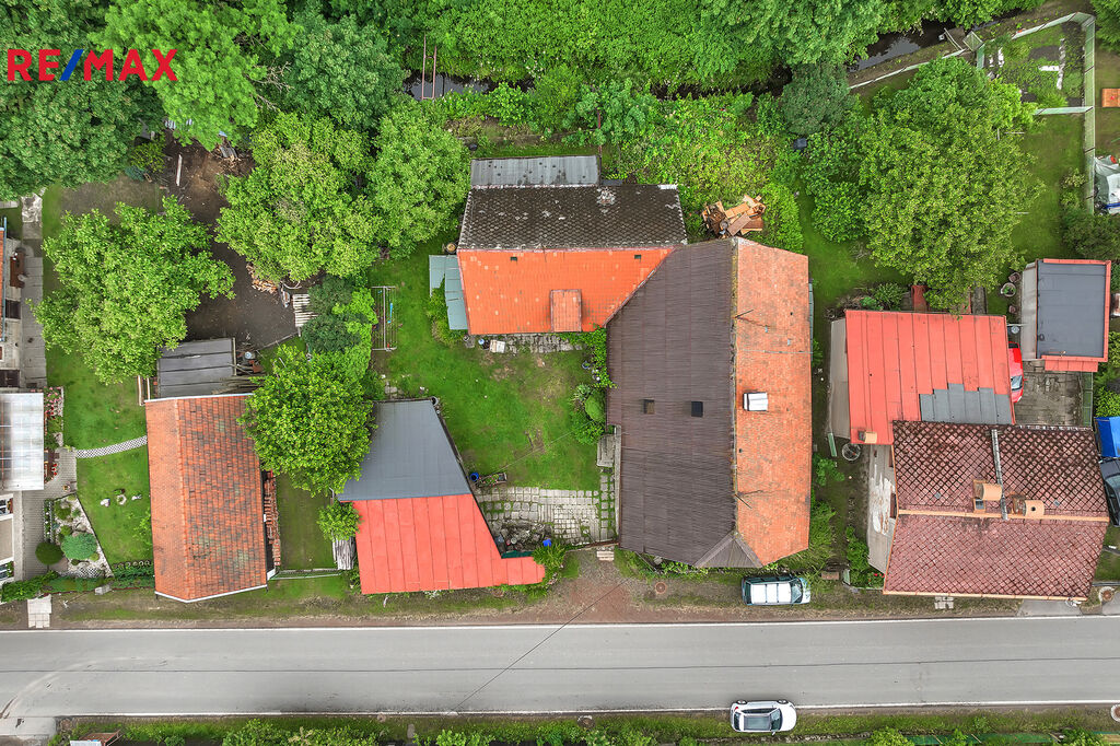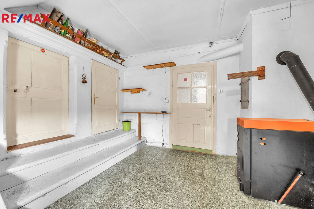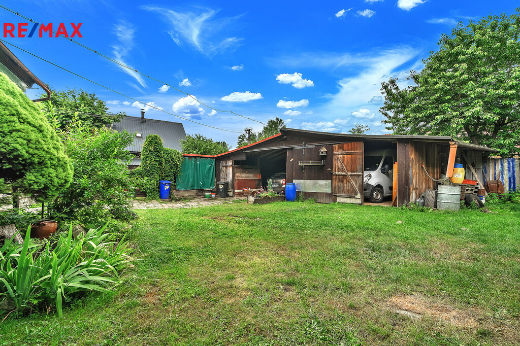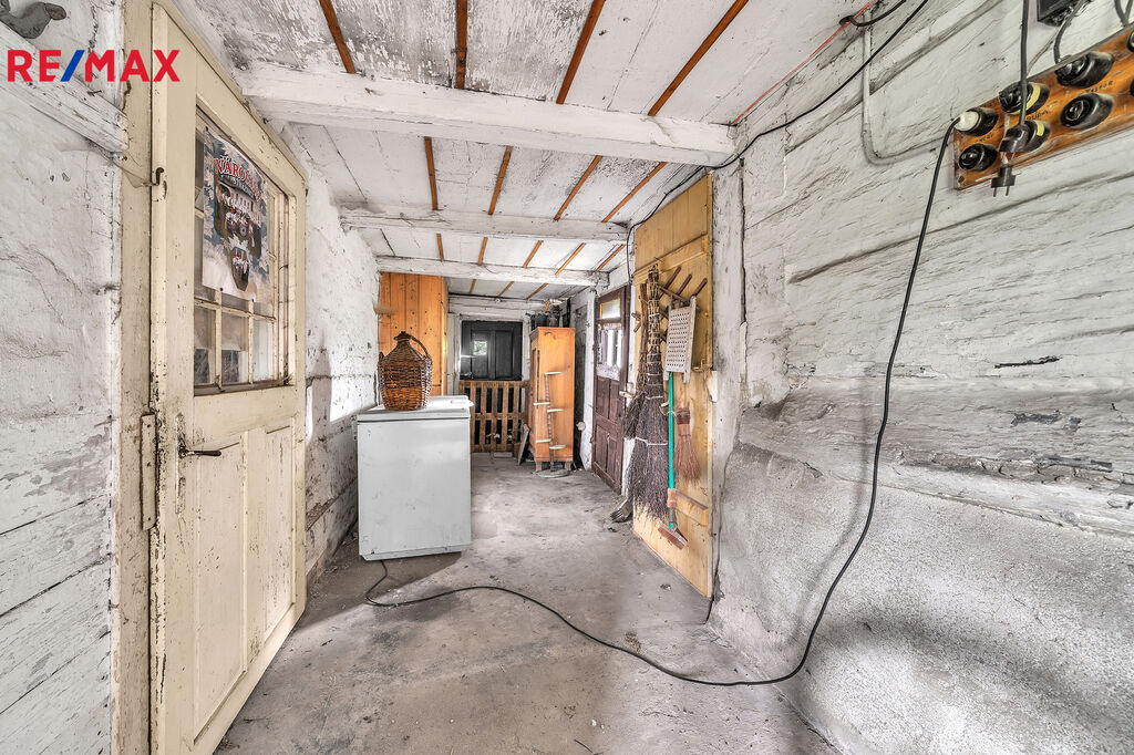Ke koupi Vám tu nabízím rodinný dům s pozemkem o celkové výměře 942 m2. Zastavěná plocha domu je 318 m2. Na obytnou část připadá zhruba 134 m2, kdy užitná plocha je zhruba 110 m2. Tvoří ji kuchyň s jídelnou a odpočinkovou částí, 3x pokoj, koupelna, chodba a prostorná spíž. Obytná část je přízemní. Zbylou část domu tvoří stodola, která má 2 podlaží a dvoupodlažní půda nad obytnou částí, která je z větší části zděná a zbytek stavby je roubený, dřevěný. Dům je částečně podsklepený.