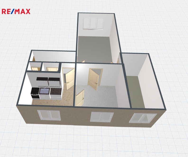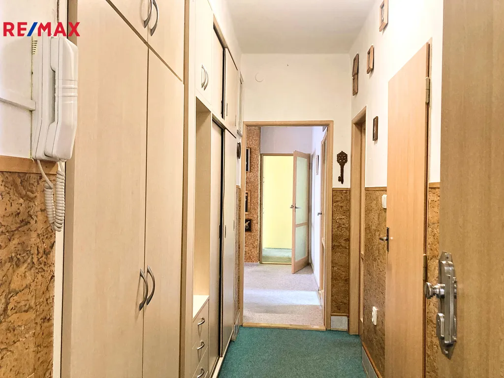 Interiér bytu se skládá ze vstupní chodby s praktickými vestavěnými skříněmi, které poskytují dostatek úložného prostoru. Kuchyně je vybavena kuchyňskou linkou a nechybí ani malá spíž pro uskladnění potravin. Prostorný obývací pokoj je přístupný z chodby, pokoje i ložnice.