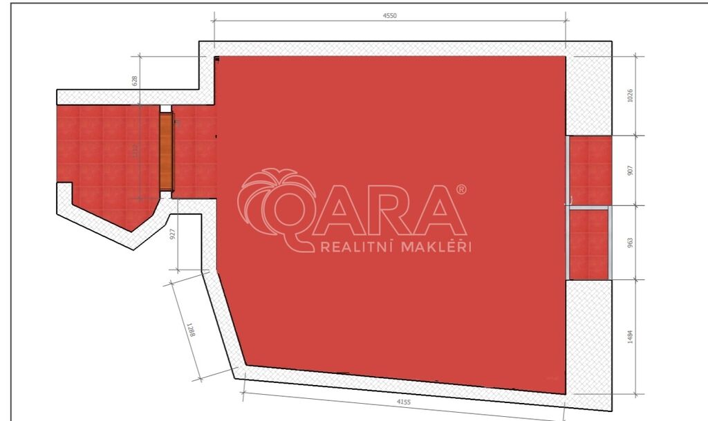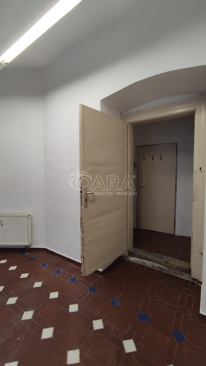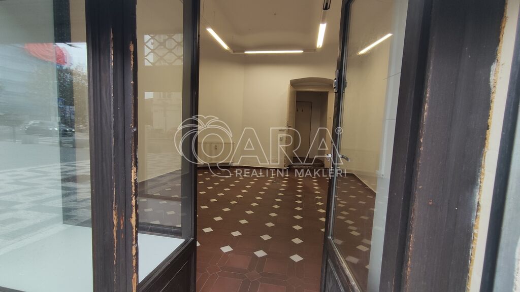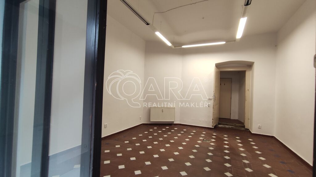 Prostor má výměru 30 m2 a sestává se z prodejny a malého zázemí, kam je přivedena voda. Toaleta s umyvadlem je ve společném užívaní s dalším nebytovým prostorem na chodbě hned za dveřmi nebytové jednotky.