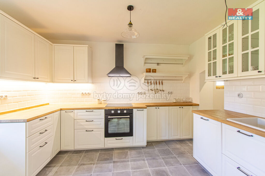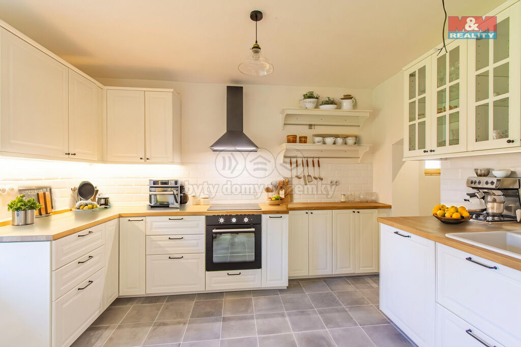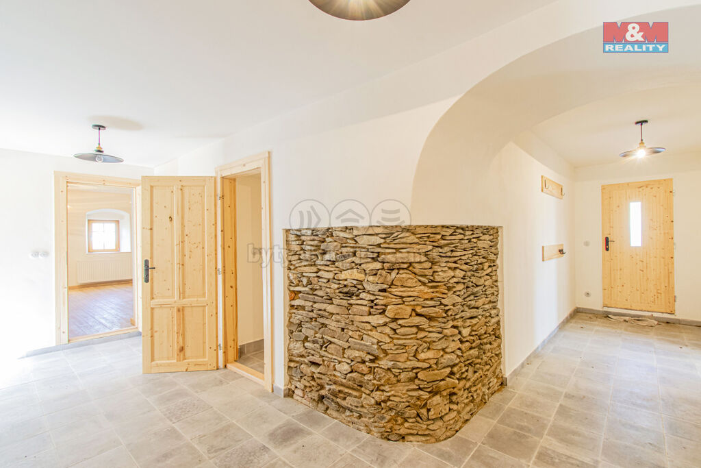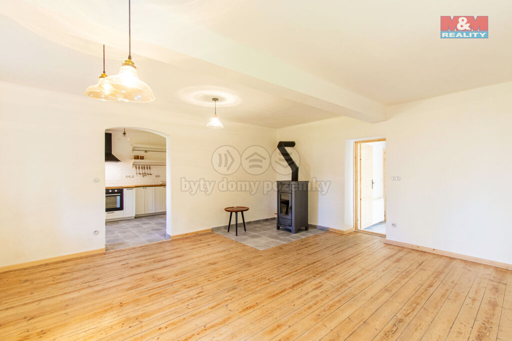 V domě proběhla velice rozsáhlá rekonstrukce: nová elektroinstalace, podlahy, okna, koupelny, topení – tepelné čerpadlo v kombinaci s krbem napojeným do topného systému.