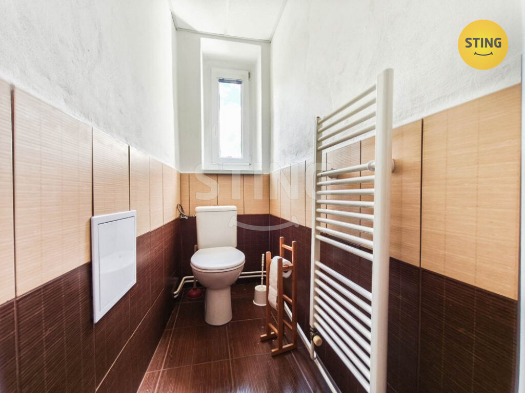 Dispozičně je byt řešen velmi prakticky – najdete zde vstupní chodbu, kuchyni s jídelním koutem, obývací pokoj, dva samostatné pokoje, koupelnu a samostatné WC. V obývacím pokoji se nachází komín, což může do budoucna nabídnout zajímavý potenciál například pro instalaci krbových kamen. Byt má plastová okna a významnou výhodou je vlastní vytápění a ohřev vody, což zajišťuje lepší kontrolu nad náklady na provoz.