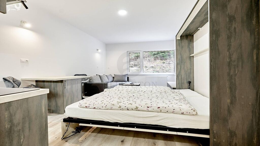Ve velmi pěkné a klidné lokalitě nabízíme k dlouhodobému pronájmu plně vybavený byt 1+kk o celkové rozloze 27m2 v novostavbě v Ostrově v Horním Žďáru Byt je vybaven : kuch. linka s vestavnou el. troubou, varnou deskou a odsavačem par, gauč, stolek, skříňová postel, botník, komoda vše viz fotografie. Koupelna se sprchovým koutem spojené s WC. K bytu náleží parkovací stání před dome a sklep. Velmi nízké náklady. Novostavba je vybavena tepelným čerpadlem. K nastěhování ihned. Vratná kauce ve výši 2 nájmů, které můžete rozdělit na dvě části. Energie převádíme na nájemníka. Vzhledem k lokalitě a ceně tuto nabídku doporučujeme.