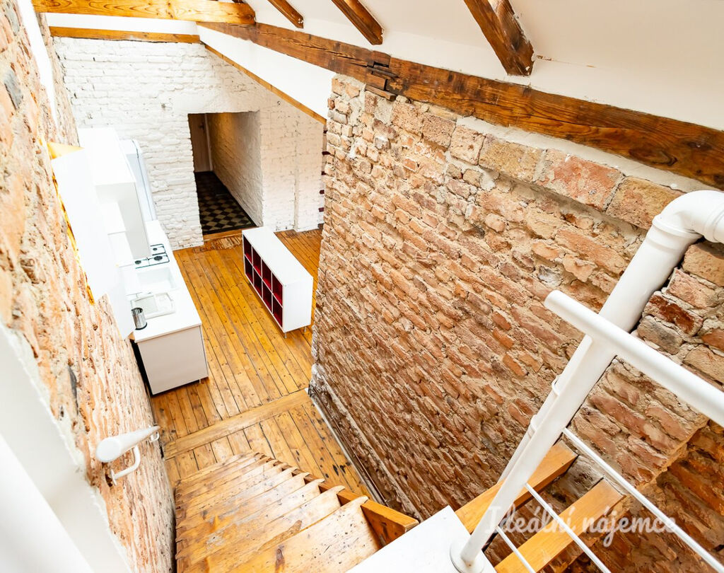 K dlouhodobému podnájmu nabízíme výjimečný byt o dispozici 1+kk (loftová garsonka) v klidné lokalitě Praha 4 - Nusle. Byt o celkové výměře 37 m2 se nachází v 4. patře cihlového domu bez výtahu. K bytu patří i sklep.