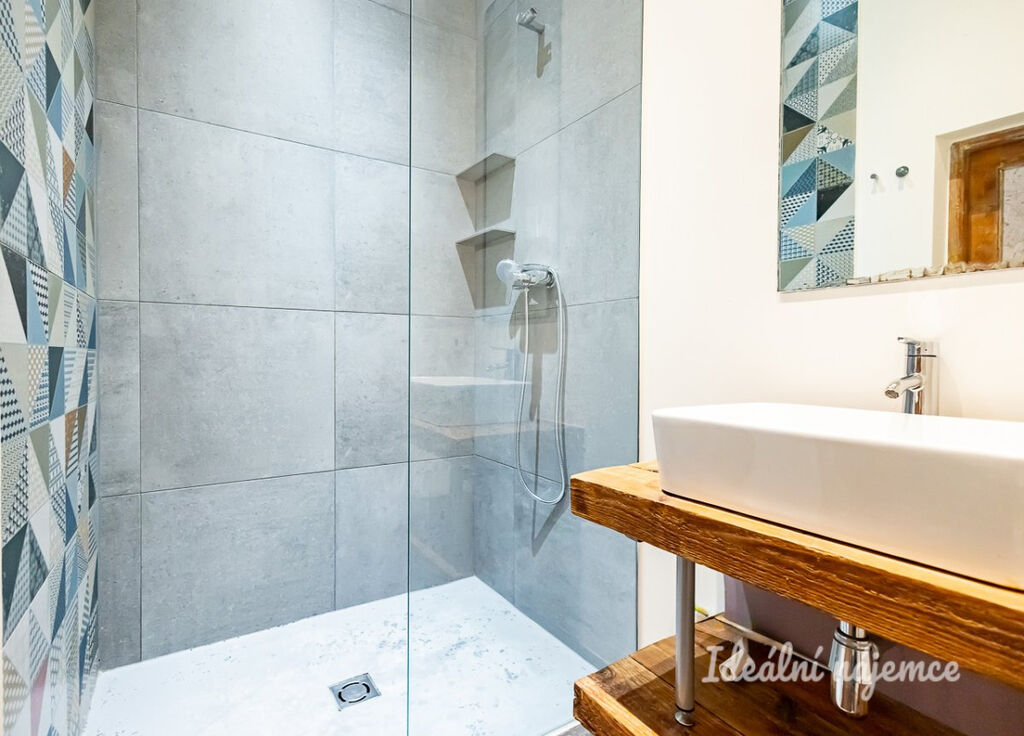 Dřevěné podlahy, vytápění a ohřev vody plynovým kotlem, přípojka na internet.