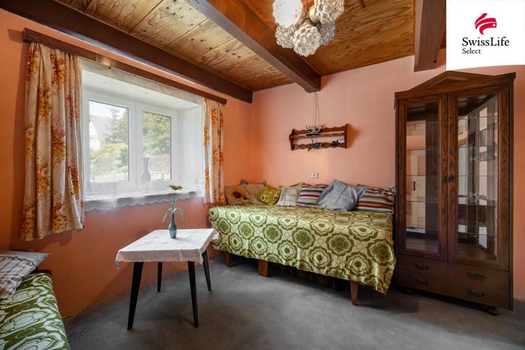 Skromná a přitom vyzývavá je tahle milá malá usedlost, kterou můžete hned začít užívat jako víkendovou, nebo celotýdenní chalupu. Voda teče, světlo svítí a kamna topí. Musíte ji vidět: ta atmosféra je nepřenositelná. Jakmile vstoupíte do průjezdu, uchvátí vás malý dvorek, kde si ještě v pyžamu můžete vypít hrnek vaší ranní kávy. Možná si vás dřív přitáhne lavička v zahradě, do které se opírá slunce. Vystavíte mu tvář a zaposloucháte se do nekonečných ptačích árií. A nadechnete se vůně růží. A je tu božský klid.....