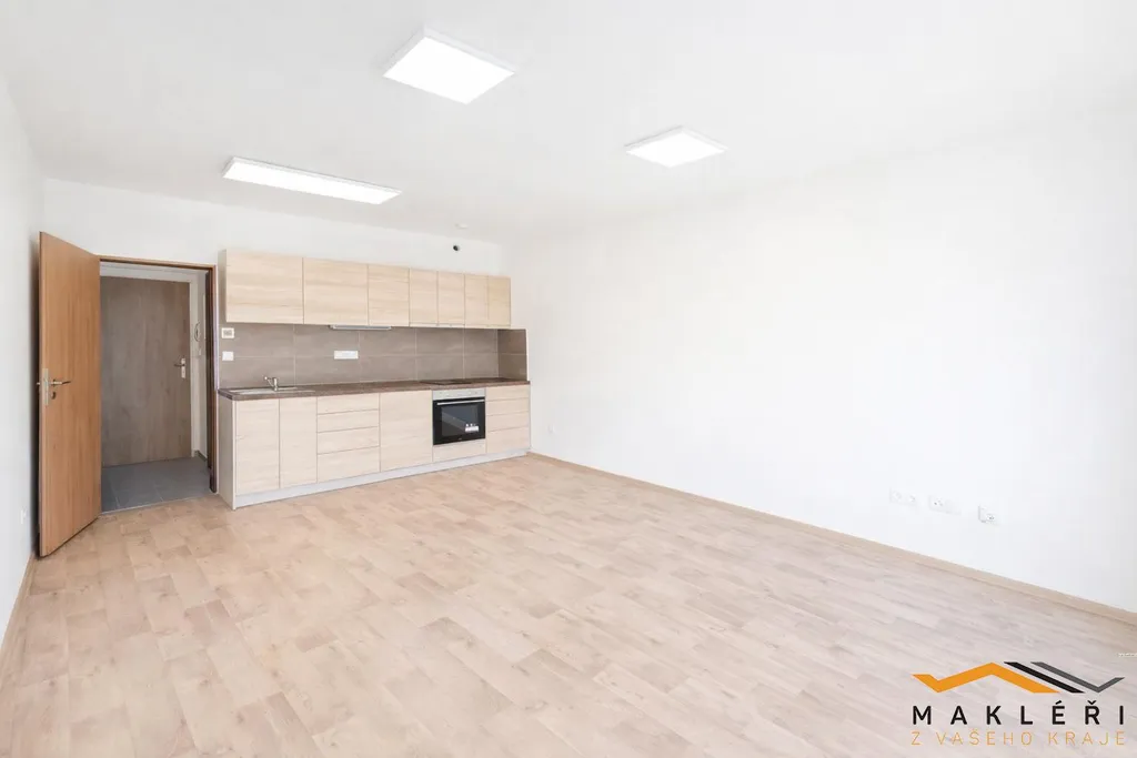 Se souhlasem majitele Vám nabízíme k pronájmu moderní byt 1+kk o příjemné dispozici, který se nachází v novém bytovém domě s výtahem na adrese Nádražní 1494/51, Třešť.