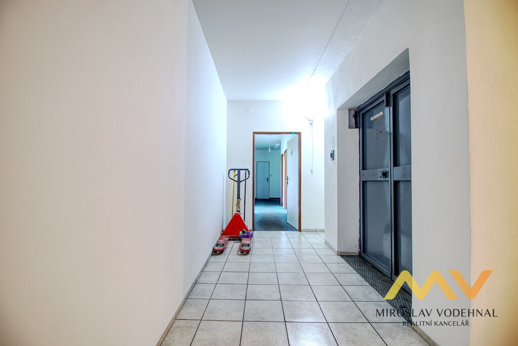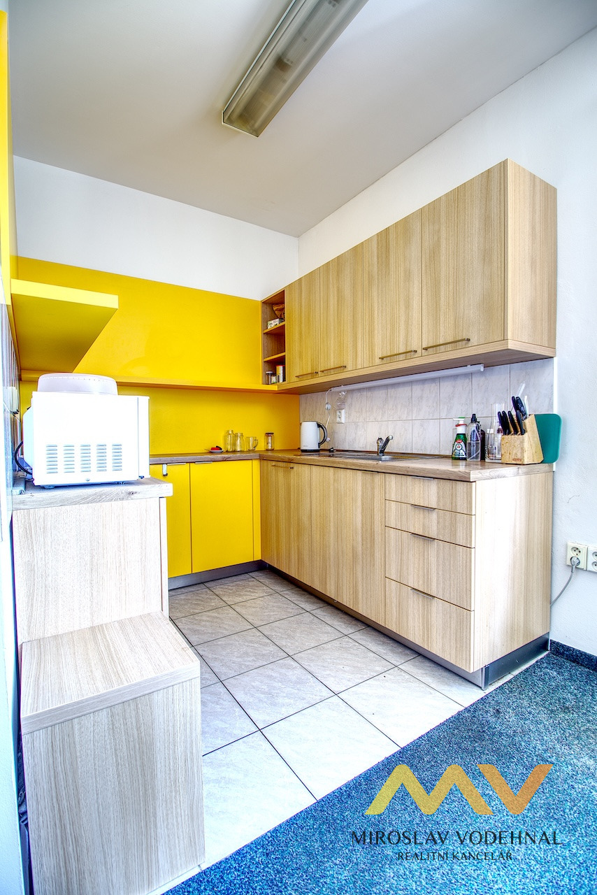 Jedná se o prostory se skladovou částí v přízemí o rozloze 100 m2 a kancelářskými prostorami v patře budovy 100 m2, kde je k využití výtah o nosnosti 800 kg. Nebytový prostor v patře nabízí 3 prostorné kanceláře, kuchyňku se zázemím, šatnu (komoru), chodbu. Ve skladové části v přízemí je otevřený sklad, komora a sociální zařízení. Pro snadnou manipulaci s materiálem slouží sekční vrata. Nosnost podlahy ve skladu 1400 kg/m2. V případě zájmu a vzájemné dohody je možné nabídnout dalších 100 m2 skladové plochy.