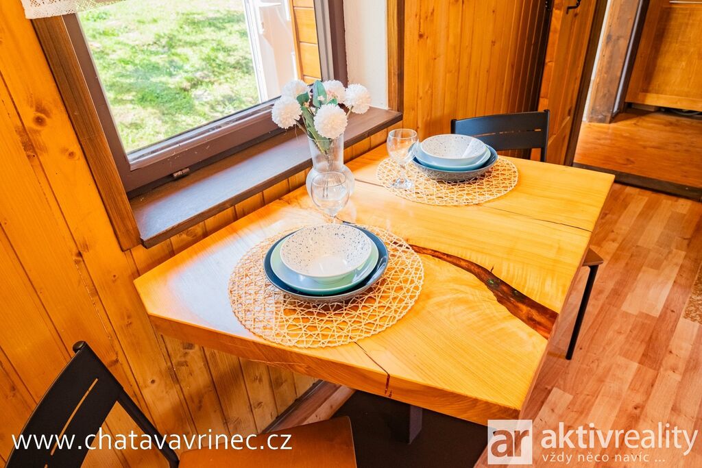 Chata prošla během posledních 3 let kompletní rekonstrukcí: nová střešní krytina, rozvody elektřiny, vody a kanalizace, podlahy, vnitřní schodiště a na míru zhotovené interiérové prvky od truhláře.