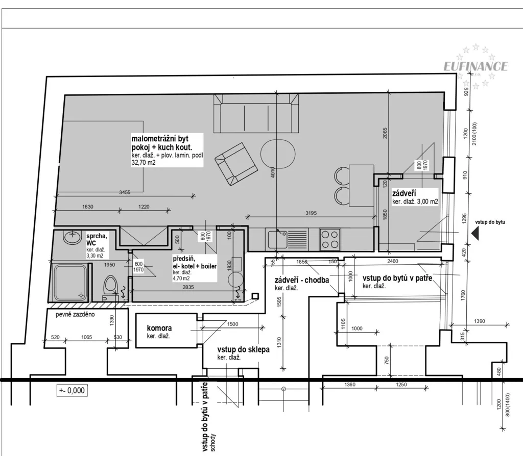| Náklady na bydlení | Poplatky na byt: 3 400,- | Poplatky na prodejnu: 1 280,- |