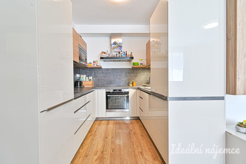 Byt se nabízí vybavený dle fotografií. Kuchyňská linka je vybavena elektrickou troubou, varnou deskou, digestoří, myčkou a lednicí. Obývací část je zařízena sedací soupravou a konferenčním stolkem. V ložnicích najdete manželskou postel a úložné prostory. V koupelně je pračka, sprchový kout, vana, umyvadlo, toaleta je samostatně.