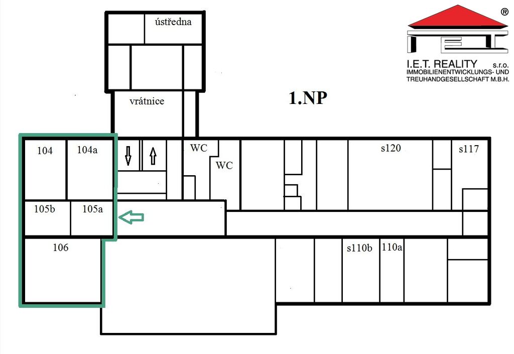 Pronájem kancelářské jednotky 81,4 m², situované ve sníženém přízemí komerční budovy na ul. Kroftova v Brně. Stávající dispozice zahrnuje předsíň s umývadlem 10,2 m2 a 4 samostatné kanceláře s výměrami 30,2 m2, 17,0 m2, 14 m2 a 10 m2. Kromě vlastního přívodu vody je k dispozici sdílené sociální zařízení na každém poschodí. Jednotka má vlastní zabezpečovací okruh s přístupem 24/7 a k pronáimu je volná ihned. Možné je využívat také omezenou kapacitu parkovacích míst.