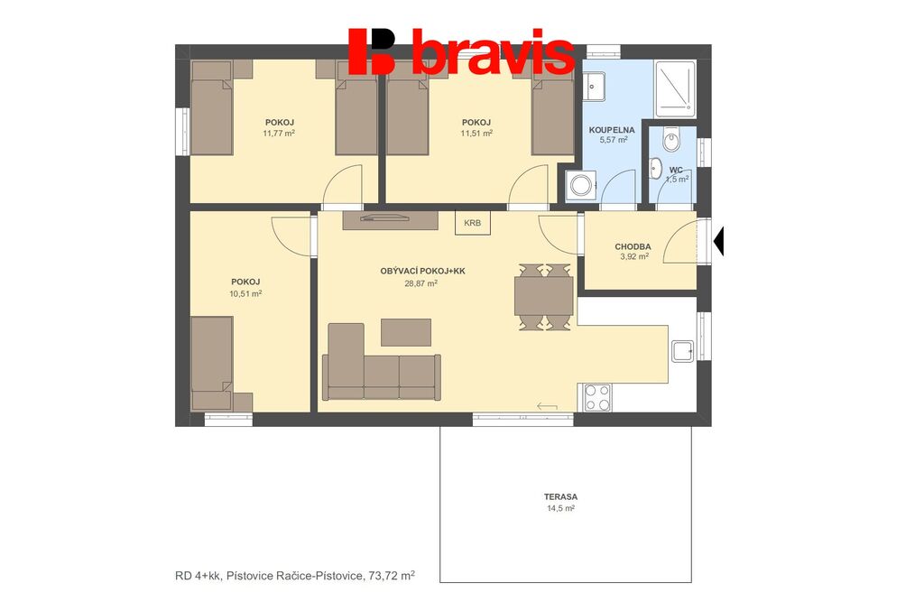 Nabízíme Vám příležitost stát se majitelem rodinného domu o dispozici 4+kk s užitnou plochou 78 m2 v obci Račice - Pístovice, 10 km od Vyškova, 33 km od Brna.