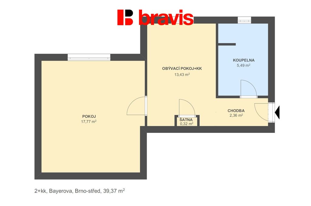 Ve výhradním zastoupení majitele nabízíme k prodeji byt o dispozici 2+kk, který se nachází ve 2. patře cihlového domu s výtahem na vyhledávané ulici Bayerova, blízko samotného centra města Brna.