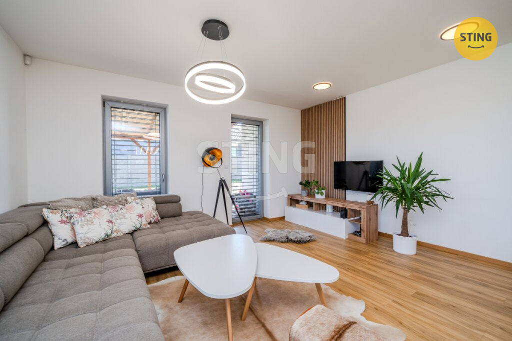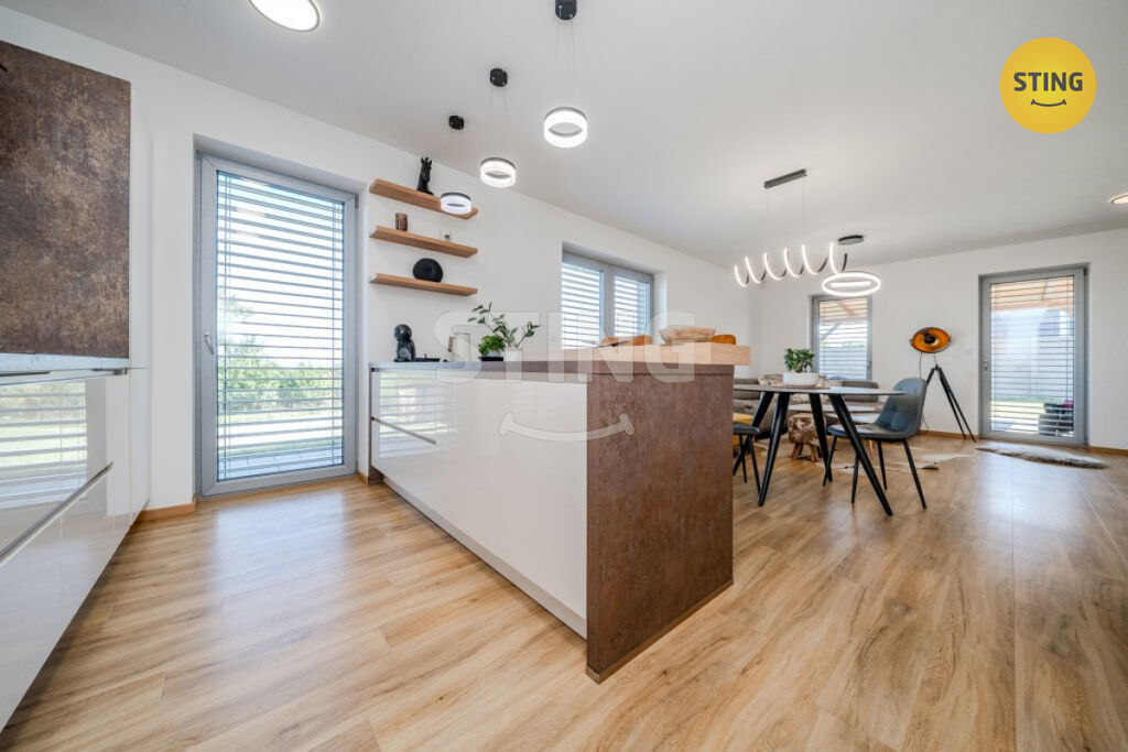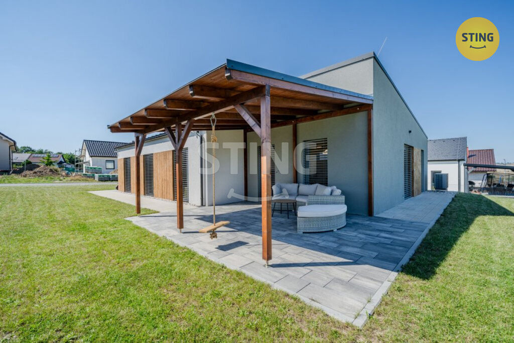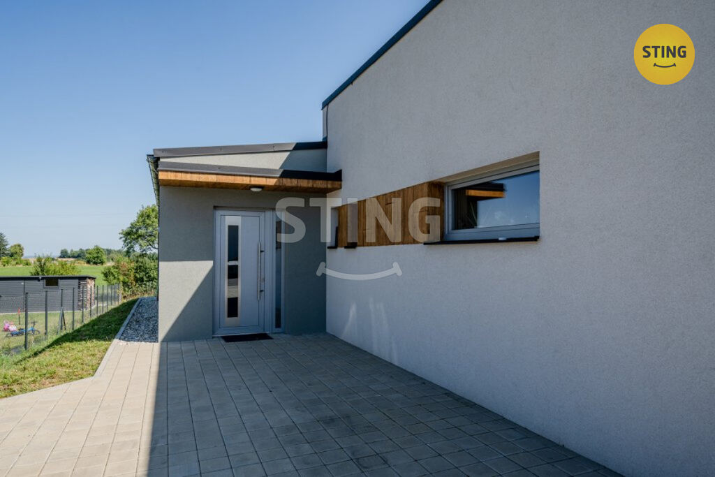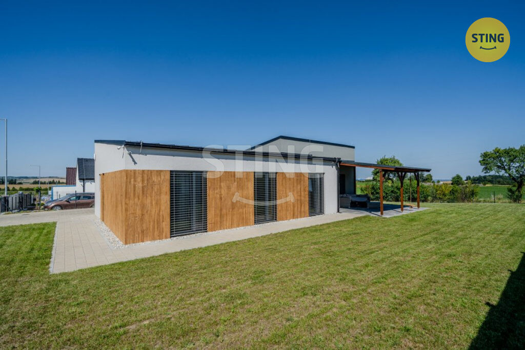 Rodinný dům o velikosti 4 + KK se nachází v klidné části Bílova. Jedná se o jednopodlažní rodinný dům, který je ve výborném stavu, kolaudace této nemovitosti byla v roce 2023. V domě se nachází zádveří, chodba, obývací pokoj propojený s kuchyní, dva pokoje, ložnice s šatnou, prostorná koupelna (vana, sprchovým kout, WC), dále samostatné WC, technická místnost. Z každé místnosti se francouzským oknem dostaneme na zahradu a z obývacího pokoje na zastřešenou terasu (zde je vyvedena elektřina). Součástí prodeje je kuchyně na míru včetně spotřebičů (myčka, digestoř, vestavěná trouba, varná indukční deska vše značky Gorenje), vestavěné skříně umístěné - jak v zádveří, tak v pokoji. K dispozici půdní prostor o velikosti 21m2.