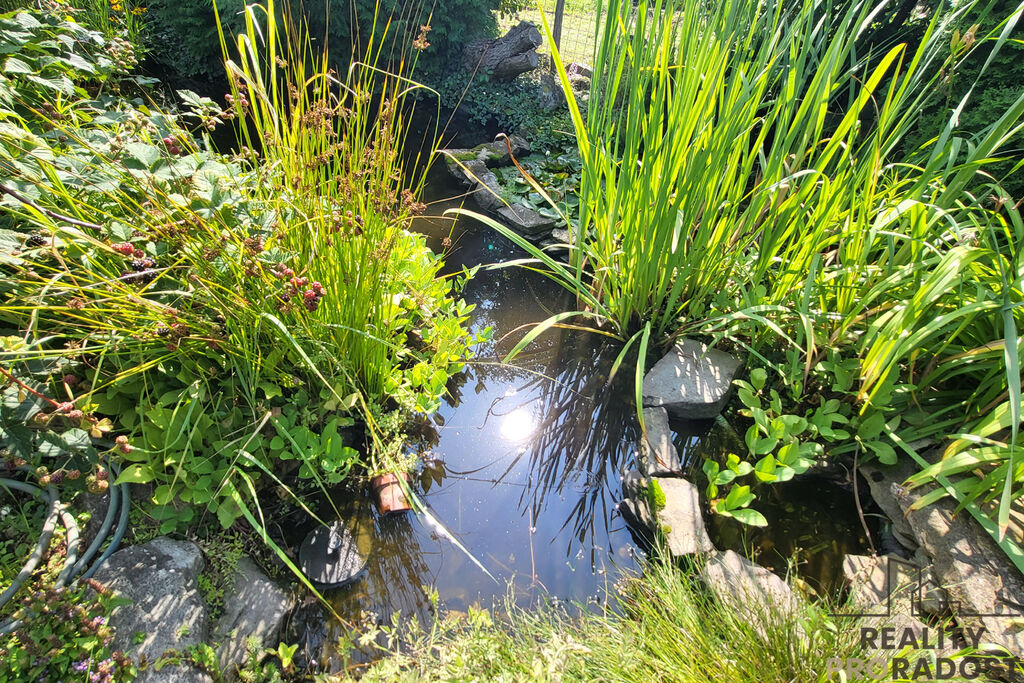 Zahrada je rozdělena na užitkovou a okrasnou část – jedna plná chutí a druhá barev. V okrasné části vás potěší spousta rozkvetlých květin, které zahradě dodávají jedinečnou atmosféru a mění ji během roku v barevný ráj. Najdete zde také posezení se slunečníkem, houpačku, ohniště i romantické vodní jezírko – ideální pro chvíle odpočinku.