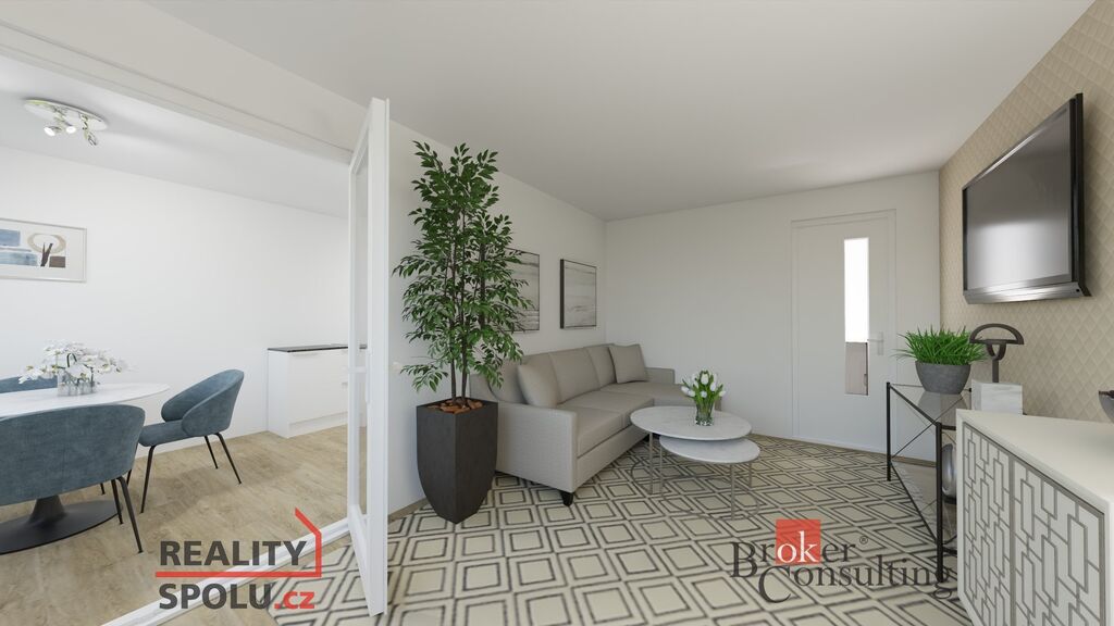 Upozornění: Fotografie obsahují i vizualizace možné rekonstrukce – byt je aktuálně v původním stavu.